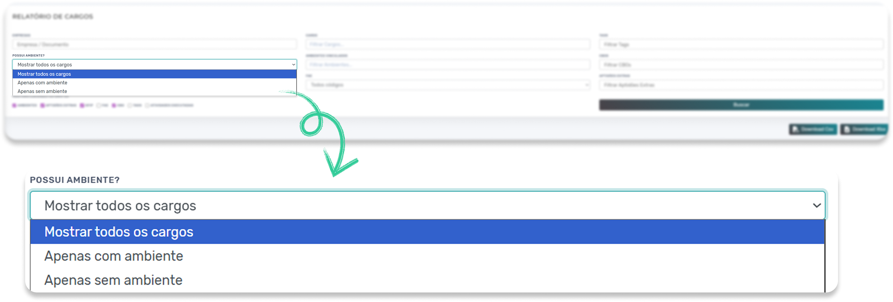 Adicionamos um novo filtro que permite listar apenas os cargos que não possuem ambiente vinculado.